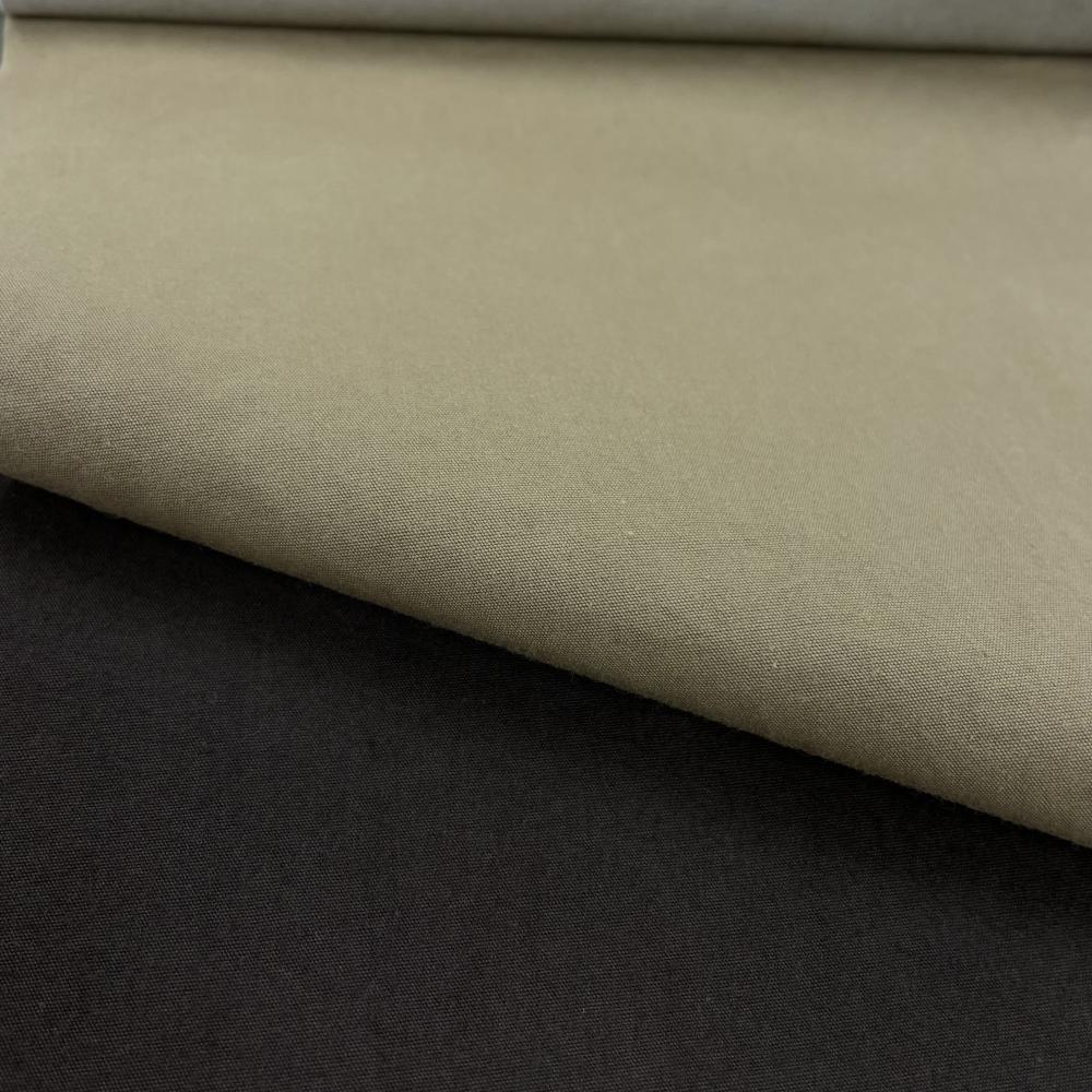高密度のコンパクトウェザーを特殊な染色機で中古風に染め上げ、仕上げ段階でもワッシャー加工を